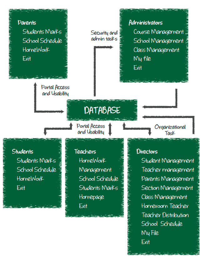 An educational institute has a central database with information about the teaching staff, the administrative staff as well as the students. An educational web portal could give access to all of these people to assist them in their jobs.