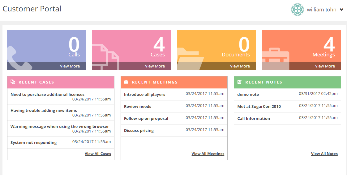 - It enables portal users to solve their queries and requests on their own, through a simplified process. SuiteCRM Joomla Customer Portal gives your customers the facility to manage their schedules, cases, meetings and documents.